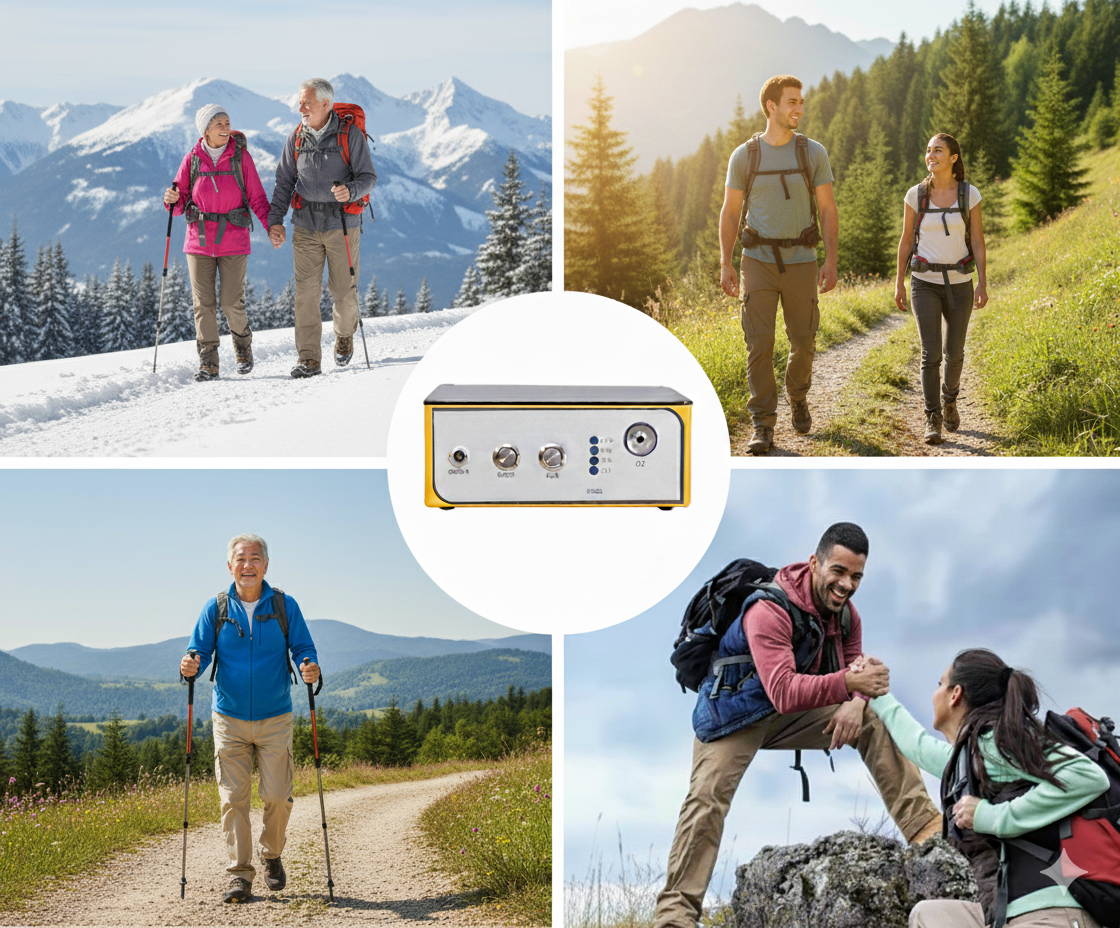 Portable oxygen supplementation for travelers who refuse to waste vacation days feeling miserable at elevation.