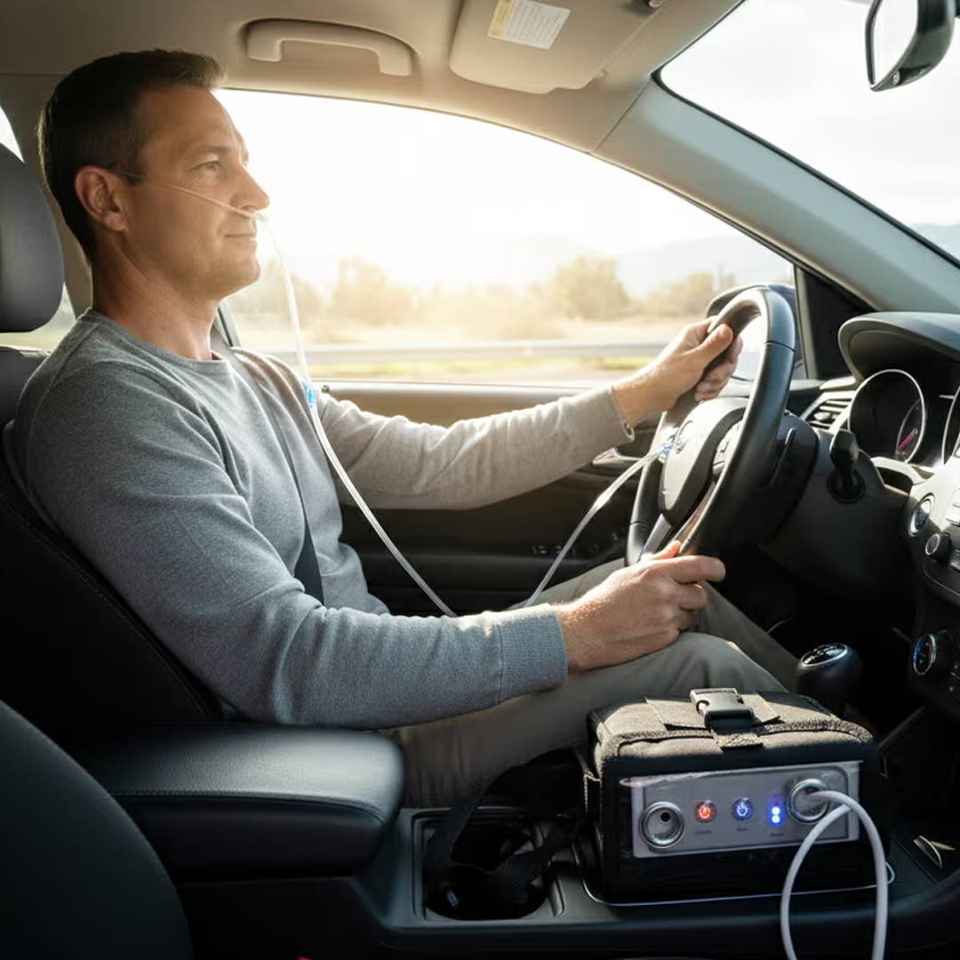 And Yes. This portable oxygen concentrator is battery-operated so that you can use it on the go. In addition, it can be powered by a motor vehicle's DC power source without the battery.